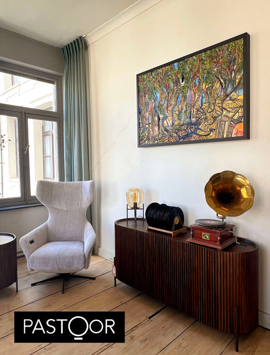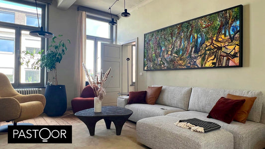 De kunstwerken worden ingelijst geleverd door mezelf en vervolgens in samenspraak met de klant opgehangen.