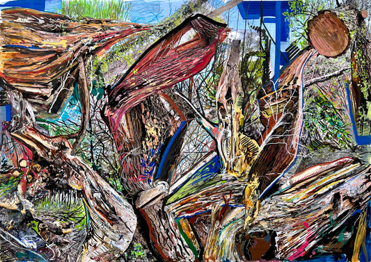 Een origineel kunstwerk op papier met acrylverf, inkten, vetkrijt & kleurpotloden.