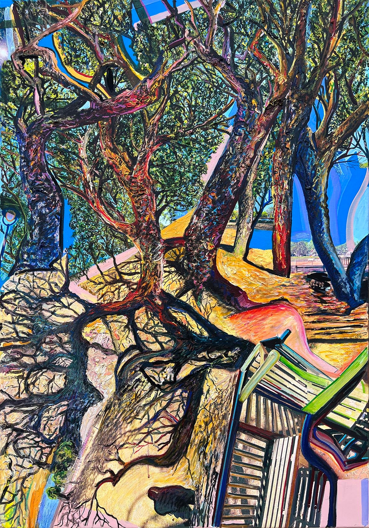 De kronkelende bomen leken te dansen met hun schaduwen & de zonnestralen knipperden doorheen het bladerdak. Een zomers moment dat ik in enkele werken wilde bewaren.